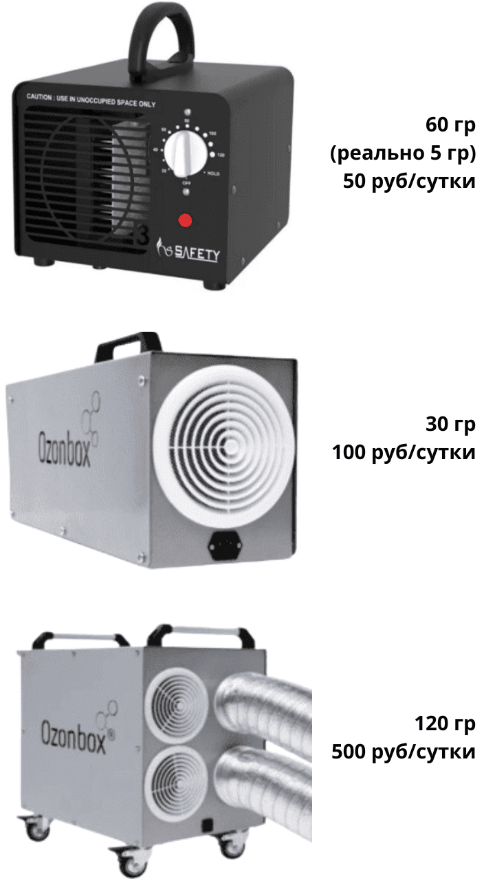 7. Аренда озонатора выгоднее заказа услуги озонирования потому, что цена на аренду озонатора складывается из понятных составляющих (само оборудование и сроки), а вот стоимость услуги формируется из рекламы, расходов на зарплату клинерам и прочих составляющих, от которых лично вам нет никакой выгоды.